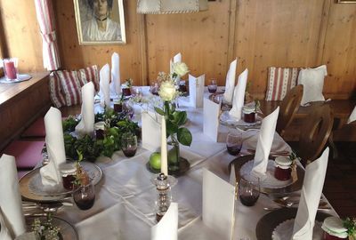 Wir bieten Platz für Feste und Veranstaltungen aller Arten (Hochzeiten, Tauffeiern, Firmenfeiern, usw.) von 2 - 60 Personen. Für Veranstaltungen jeglicher Art ist eine Reservierung notwendig.