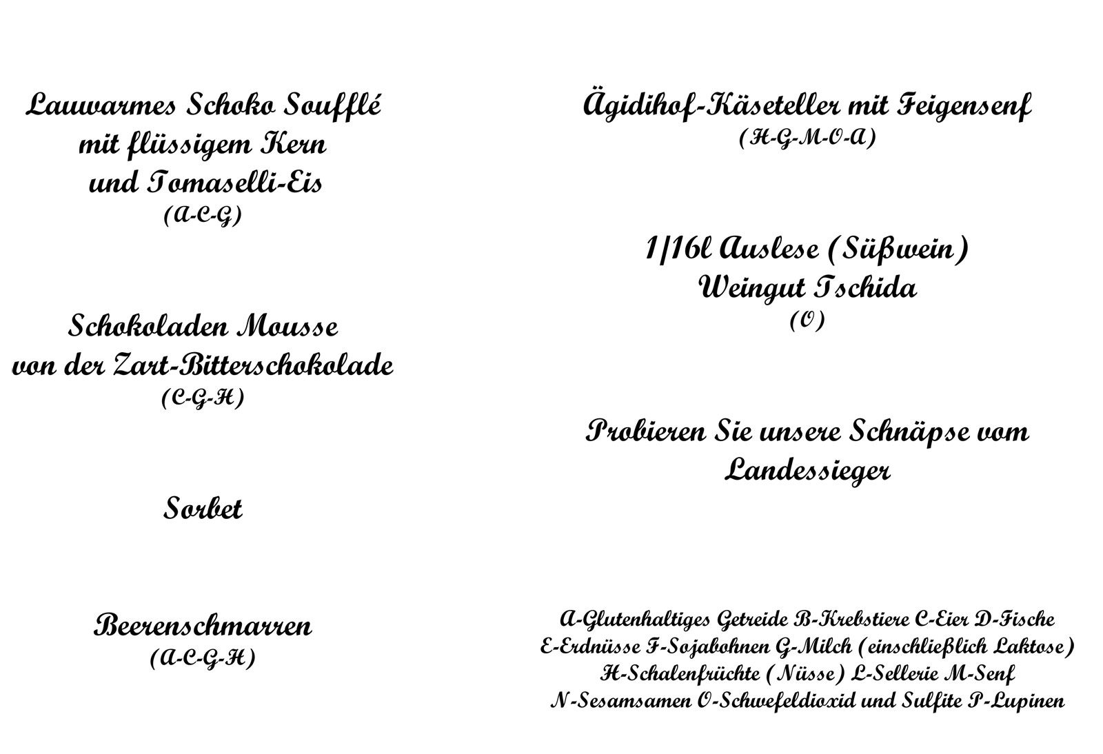Angaben ohne Gewähr. Änderungen und Abweichungen in der Speisekarte sind jederzeit möglich!