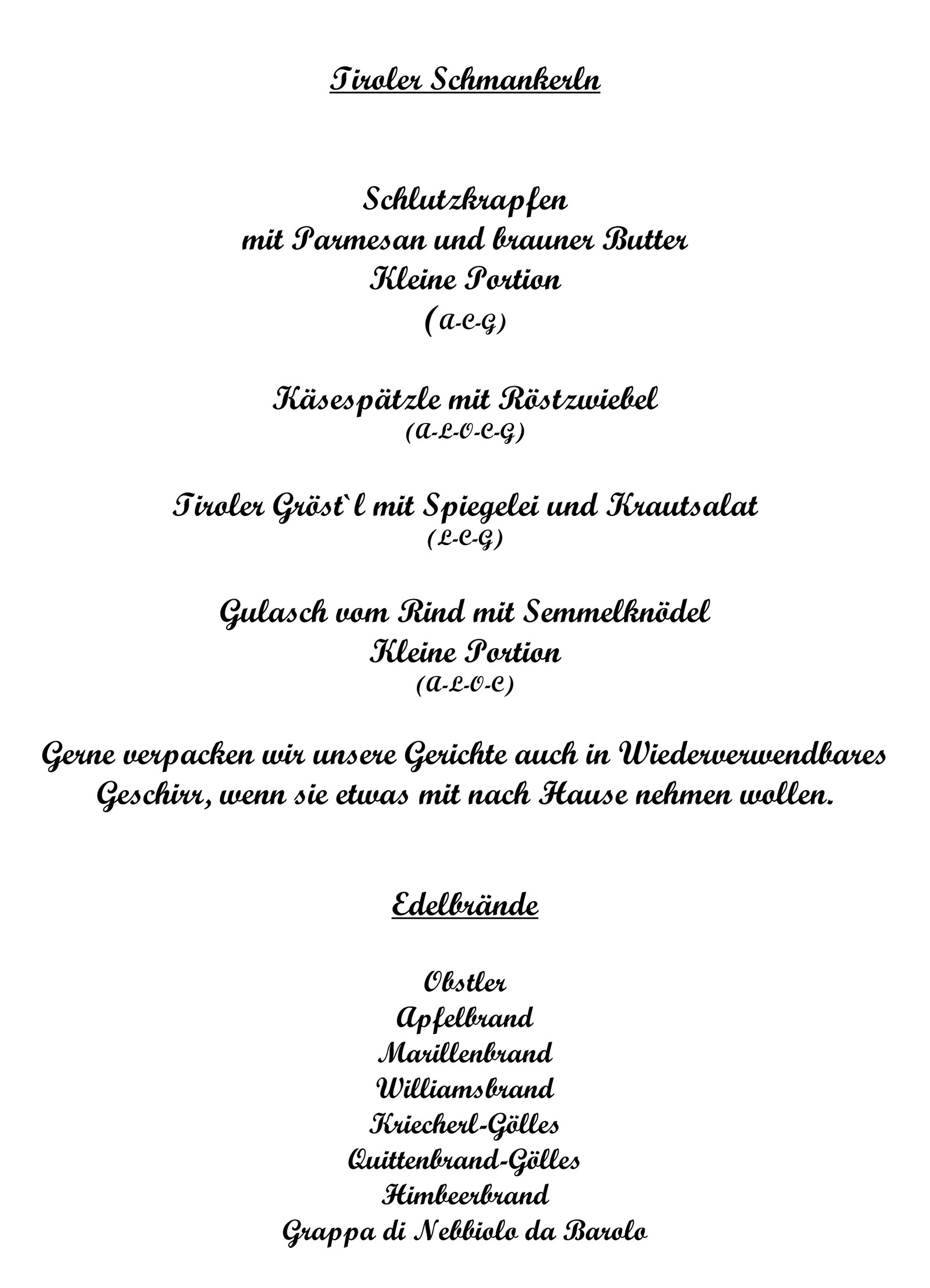 Angaben ohne Gewähr. Änderungen und Abweichungen in der Speisekarte sind jederzeit möglich!