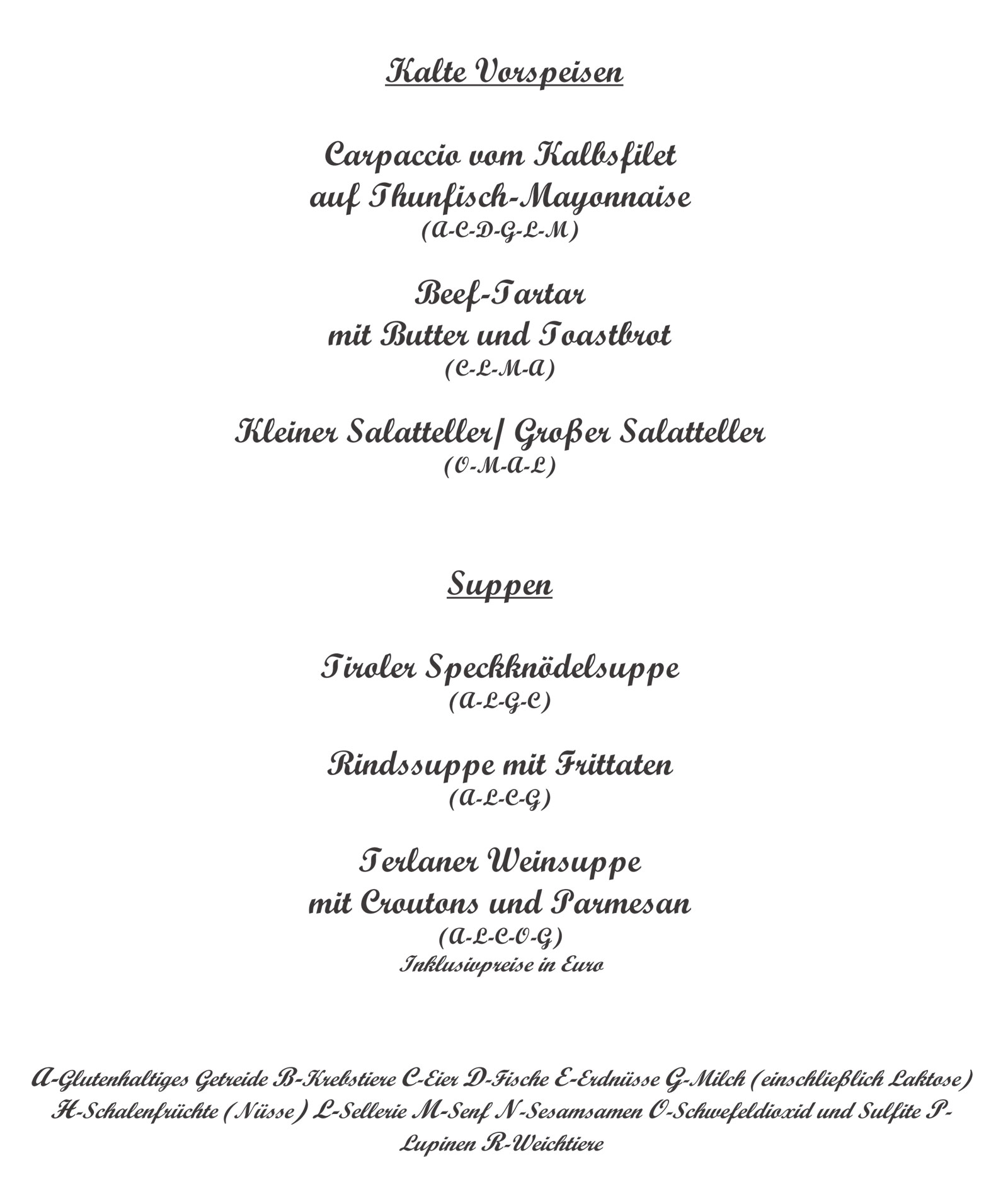 Angaben ohne Gewähr. Änderungen und Abweichungen in der Speisekarte sind jederzeit möglich!